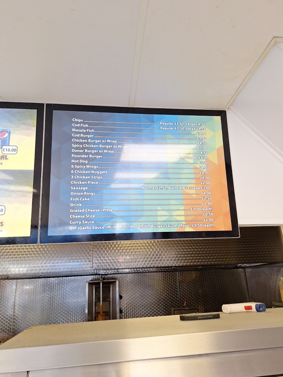 Alongside the main items, the menu includes well-loved sides such as chunky chips and a variety of flavorful toppings or marinades that add a pleasant twist to the usual takeout experience. Refreshing soft drinks are available to complement the meal, making it easy to enjoy a satisfying, uncomplicated bite to eat.